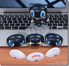 The first is the way in which his face plates is handled. Instead of having between three and four different faces to choose from, the Morgana Nendoroid’s face is broken up into two parts. People get four upper halves and four lower halves. This means there are up to sixteen different expressions that can be made.
