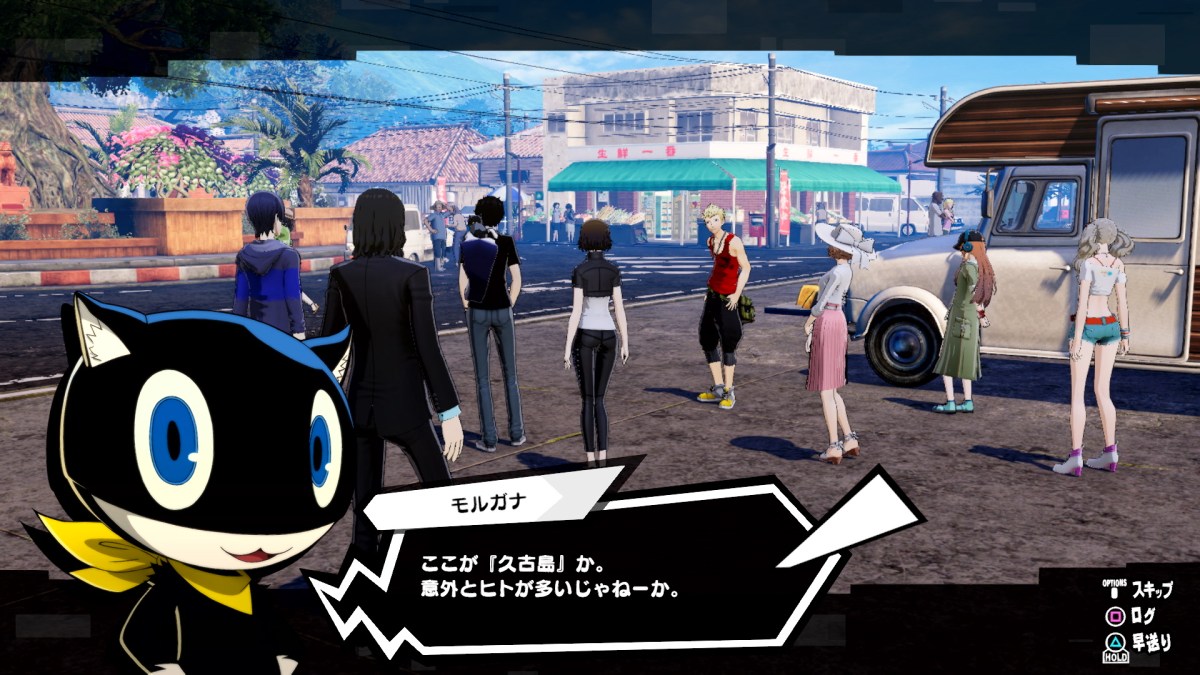 While pursuing the mystery behind the case, the Phantom Thieves find themselves at a resort island called Kukojima, located close to mainland Okinawa. The place is a beautiful and lively beach resort with everything from shops for tourists and warm locals.