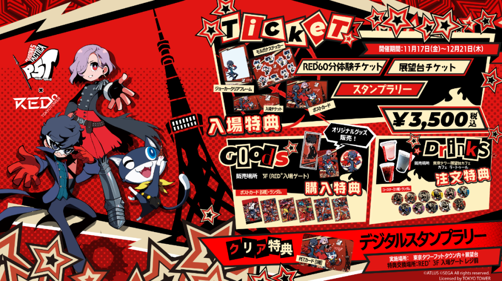 Atlus revealed a Persona 5 Tactica collaboration event at RED° Tokyo Tower, and various kinds of merchandise related to the game will appear in the landmark’s recently-opened entertainment center. The event will run from November 17, 2023—the same day as Persona 5 Tactica‘s release date—to December 21, 2023.