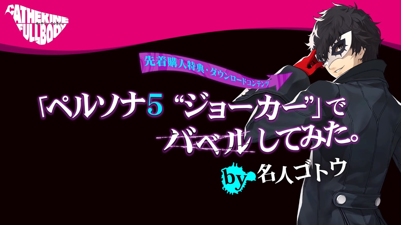 Before Persona 5’s Joker is makes his appearance in Super Smash Bros. Ultimate, he has a quick stop to make in Catherine: Full Body as a guest DLC character for Babel and Colosseum mode. Those who purchase first-print copies of Catherine: Full Body will receive the Persona 5 Joker DLC character used in Babel and Colosseum. Catherine: Full Body releases in Japan on February 14, 2019 for PlayStation 4 and PlayStation Vita. The game releases in the West in 2019. Check our previous report for info on the game’s 11 Ideal Voices DLC. You can also check out its sweet limited edition for Japan here.