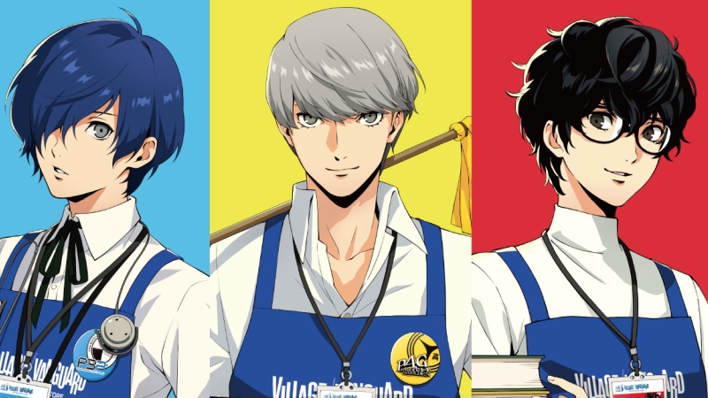 The lead characters of three Persona series titles are showing up for work at Village Vanguard, a Japanese bookstore. The special promotion brings Persona protagonists to Village Vanguard as a line of exclusive merchandise items [Thanks, Denfaminico Gamer!]. Village Vanguard is a bookstore chain that bills itself as an “Exciting Bookstore,” bringing in customers interested not just in books and manga, but also character merchandise, novelty items, prank toys, candy, and other things of interest to geeky customers. That said, only three Persona protagonists will show at Village Vanguard for the promotion. Specifically, the male leads of Persona 3, 4, and 5 are on offer. The main image for the promo is an exclusive poster featuring the boys dressed in Village Vanguard staff wear.