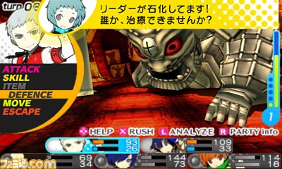 While Persona Q starts you out at the school festival, where things are nice and cheerful, Famitsu say that the story itself is more on the serious side, which they feel gives it a lot more of the Persona vibe. Meanwhile, as far as dungeon crawling and fighting goes, it has a lot more of an Etrian Odyssey feel, especially with the mapping and F.O.E. features.