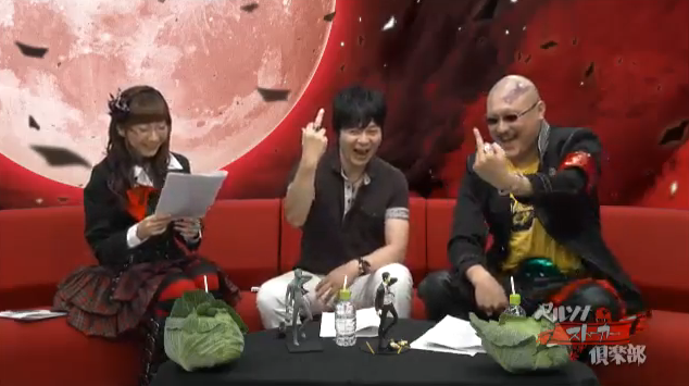 Madono and the two hosts get a good laugh upon seeing the image, as Adachi gives off a complete “slave’s look,” standing next to Dojima. While Persona Stalker Club got a bunch of Adachi questions, one of the most common one was for Madono, and whether he had any difficulties when taking on the role of Adachi. According to Madono, it’s not that Adachi was difficult, but he saw Adachi as faulty character, which Madono sees as his best trait, and made it really fun for him to portray, due to his love of such characters. He also mentions that he feels he can relate with Adachi more as an adult, and that he feels other people would probably be able to relate more as they grow older and understand what it’s like being in the common workplace. Another fan notes that Adachi was always buying a bunch of cabbage, and asks what kind of food he makes with it, or if he can even cook in the first place. According to Atlus, he likes to slice it up with a side of mayonnaise and miso, and have it on the side with beer. On a side-note, Madono mentions that he likes to cook, and one of his favorite cabbage foods is actually a quite simple little something that he recommends viewers, where you get sliced cabbage, mix in some ajitsuke-nori (flavored nori) and some sesame oil. After messing around with some made-up Adachi lines for Madono to recite, the show goes into its Midnight Station segment at 43:15, as they show the latest of all-things Persona. For those of you looking forward to getting the Persona 4 Arena Ultimax arcade stick, they share a closer look at the 47:23 mark. As previously reported, the stick will be compatible with PlayStation 3 and PlayStation 4. They also show another look at the Adachi figure, which is actually still in its prototype form, according to Kajita. We also get to see a closer look at Kajita’s Izanagi ring (with him Madono flipping the bird) at 50:47, which will be sold at a later date.