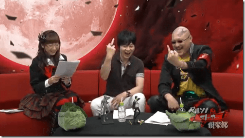In episode 5 of Persona Stalker Club, Isocchi and Kajita find themselves in their own special little Velvet Room. To commemorate the release of Persona Q, Kajita has the game’s logo on his head for the episode, and they go on to joke about how his head could easily be used for advertisement purposes. They start out with a little survey using NicoNico Douga’s voting system, and ask how many hours players have put into Persona Q: Shadow of the Labyrinth thus far. Keep in mind that the episode aired about two weeks after the release of the game.