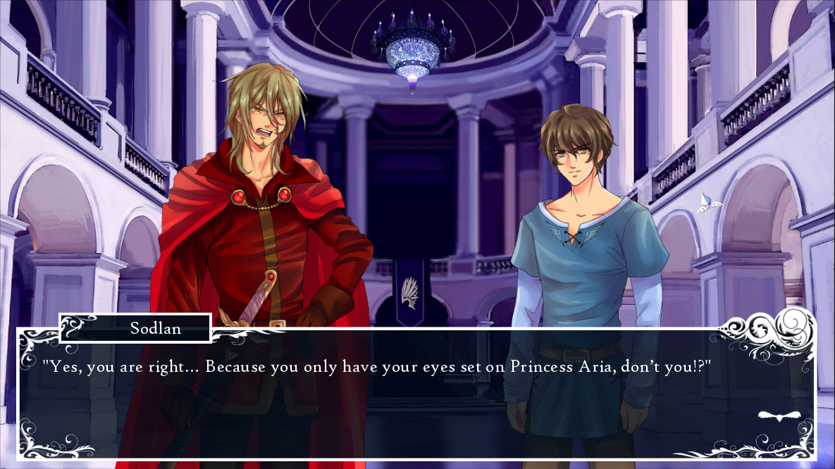 An arranged marriage between Princess Aria and Prince Raymond will save the kingdom, but it will break keep the young woman from true love in visual novel Wingdaria Destiny.