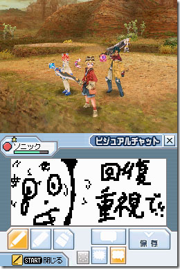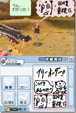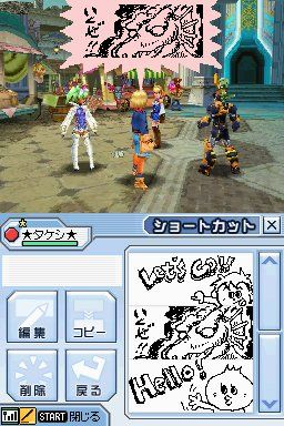 Visual chat is just one ways Phantasy Star 0 takes advantage of the touch screen. The bottom screen also hosts a map which you can blow up by tapping it. Seeing all of your stats and life bars for your allies on the bottom screen is nice too. The game feels less cluttered since all of the action takes place on top.