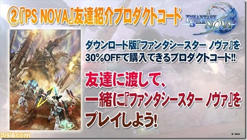 Next is about the 30% discount you can give to any of your buddies for a digital version of Phantasy Star Nova. Getting the game this way will also include all three sets of first-print bonuses.