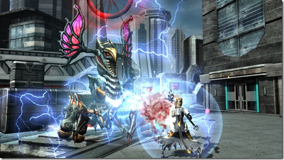 While Phantasy Star Online 2 is a PC game, I played it on a 360 controller. Having played Phantasy Star Online Episode I & II on consoles, I felt right at home. This demo provided locked my experience point gain so I couldn’t level up and didn’t allow me a MAG, essentially stripping the RPG elements from the game. That said, it did allow me to focus solely on combat, letting me play a female Newman (think space-elf) Force (think space-wizard). First of all, the most basic attacks feel like a more accessible version of the original PSO. After each tap of the X button your character attacks and a ring closes in on them. When that ring turns red, you can press the button again to make your next attack more powerful. While this rhythm feels very similar to the way combos were strung together in PSO, the rhythmic inputs can be ignored if you simply mash or hold the attack button. I was given three loadouts, which I could swap between by pressing up and down on the D-pad and select with B. The first (and the one I used the most) was a wand. X was a standard attack and B was a fireball. While spells couldn’t be comboed into anything, holding B would make the spell more powerful. Holding RB would shift my available abilities from physical attacks and fire to enemy-penetrating ice and a heal spell that would spread out to my teammates the longer I held it. Perhaps because I was playing a Newman, I never had to worry about running out of Photon Points (think space-MP), since it constantly regenerated. The second was a strange, throwable card that I didn’t do a whole lot of damage. It gave me access to a fire spell that circled around my body, but frankly I didn’t find it that useful. More interesting to me were the attack and defense buffs that I had access to by holding RB, but even with a fully charged spell, my teammates rarely stood still close to me long enough to be buffed.