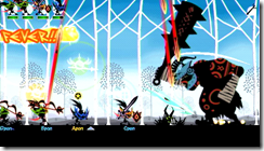 The part I played was very much like Patapon and Patapon 2, but Patapon 3 has new features. Sony, following the ad-hoc crazy popularized by Monster Hunter Freedom, expanded the multiplayer mode to support eight players. You can duke it out in four-on-four battles our team up for multiplayer quests. Sony even created Pata-text so networked players can chat with each other.