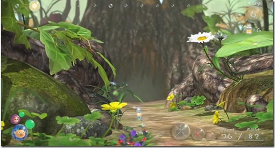 The GamePad also has a camera feature, which will allow you take pictures of anything happening in-game from Alph, Brittany, or the Captain’s perspective. When you pair this with the absolute preciseness in conveying real-world textures, you can get some amazing photos. This is also the primary drive behind the Miiverse features in the game—allowing you to post the pictures directly to the Pikmin 3 community without having to exit the game. This really lets you capture the charm and wonder of the planet’s serene and surreal landscape… and the odd habits of the Pikmin. Pikmin 3’s world is so vivid and lush that you’ll often find yourself baffled that David Attenborough wasn’t hired to narrate it. I’m looking forward to what I’ll discover in the next few days of exploring it, and what I’ll be able to share with all of you in turn. Food For Thought: 1. The game really shows off what the Wii U can do. I’m happy saying that, with a proper set up, the environment looks more realistic than any other video game I’ve played to date. Those are big words from a guy who watched E3 this year. 2. Pikmin 3 brings with it a new style of tutorial—one that’s sorely missed at that—and that’s by integrating instructional gameplay with the story. The tutorials are relevant to what you’re doing, so you’re not going to be dragged out into the tall grass and taught how to throw a Pokéball for the twentieth time. 3. All of the sound effects in this game were recorded to perfection. When something hits glass, you know and feel like something’s hit glass. I’ll get into what that means after spending some more time with the new types of Pikmin over the next few days. 4. Don’t forget to collect fruit! You create your time limit. Ever fruit yields a certain amount of juice, which you need to survive, and although you have an unlimited number of days, your days will be numbered if you don’t collect enough food!