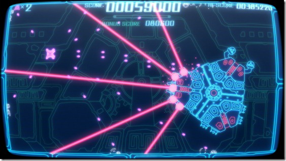 Pixeljunk Sidescroller opens on a prompt to “insert coin” on a display designed to replicate arcade cabinets of old, complete with a bowed screen and scan lines. However, the retro aesthetic stands in stark contrast to the modern, bass-heavy music pulsating under the main menu. I don’t often spend much time on menu screen, but this one gave me pause. The music sounded almost sinister compared to the simplicity of the menu (which claimed to be copyrighted in the 26th century). It’s not unpleasant by any means, but it was odd to hear modern music combined with the vintage art direction. This combination of retro and modern permeates the entire Pixeljunk Sidescroller experience. Sidescroller is a horizontally scrolling shooter in the Gradius mold. It’s the standard fly forward, shoot some enemies, collect power ups, fight the boss at the end of the stage skeleton that shmups have been using for years. However, while many shooters would end their stage with the boss fight alone, Sidescroller always contains a very intense escape from its “Sectors,” generally with thinner corridors to navigate and more of the stage’s specific environmental traps. This is the first of a few differences from the classic shmup formula that give the game its own identity. Your ship is equipped with three weapons that can be swapped between at any time: the standard machinegun, a powerful laser, and (my personal favorite) the bombs. At level 1, the bomb fires two bombs up and two bombs down. These seem to have some special gravity applied to them, since the bombs fired upward bounce along the ceiling as the downward bombs bounce along the floor. All of the bouncing is the result of Q Games’ fancy physics engine from Pixeljunk Shooter, and can therefore be manipulated by the way that you’re moving when you fire the bombs. Bouncing bombs over a ledge to take out a particularly annoying enemy that you can’t reach with your other weapons is incredibly satisfying, and I’ve never used a weapon quite like it in a shmup before.