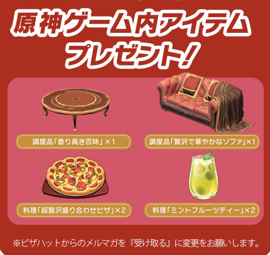 The elite women of Liyue are going international, as Pizza Hut in Japan also started a collaboration with Genshin Impact. It is using the same key visuals of Yelan and Ningguang in modern-looking closing as the campaign in China. Boxes and bags with Yelan and Ningguang on them will be available from May 1, 2023 to June 18, 2023. Aside from being able to get boxes with Yelan and Ningguang on them when you order the My Box set from Pizza Hut, you can also get a multipurpose file of either woman for 200 JPY (~$2) extra. These are available while supplies last. However, you cannot choose which one you get. The file is around 100 millimeters in width and 220 millimeters in height. More importantly, you will be able to get four event items in Genshin Impact if you order the My Box set from Pizza Hut. You can get a crafting recipe for a table and a couch, as well as recipes for Mint Fruit Tea and Super Deluxe Pizza. Though regions outside of China never had a KFC campaign, all servers eventually received the KFC recipes for Golden Chicken Burger and Golden Fried Chicken. So it’s possible that these two recipes will appear in a future event for other countries, though we haven’t seen a HoYoVerse announcement about them yet.