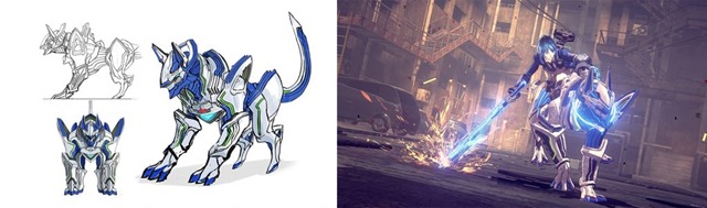 The Sword Legion has a unique silhouette, a little different from some of the characters that Masakazu Katsura has dreamed up in the past. Look at those flowing lines! It’s a suitably heroic design for an elite living weapon. Someone, please, make this into an action figure, pronto! This was the first Legion design we had, and it became the base for the designs of the remaining four. Now I’d like to turn back the clock a bit and reflect on those early design stages… Let’s go back to the beginning. In fact, in the earliest stages of development, there wasn’t anything called a “Legion” at all. Your “partners” were simply enemy chimeras that you captured throughout the game. They might look something like you see here. But then we decided that the main characters needed actual, established partners to seem like part of a heroic police team. Thus the Legions were born. Here are a few ideas we prepared in-house before we had Katsura design the Legion for us: