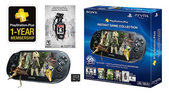 Sony have announced a new PlayStation Vita bundle, which will be released next week in celebration of the PlayStation Plus service arriving on the Vita. Dubbed the “PlayStation Plus Instant Game Collection PS Vita Bundle,” it contains a 3G PlayStation Vita system, a 1-year subscription for PlayStation Plus, a Unit 13 game voucher, and a 4GB Memory Card for $300. $300 is a steep price to pay for a portable, but Sony point out you’ll get access to seven different games, including the Unit 13 voucher. The other six are provided as part of PlayStation Plus. As previously reported, they are: Uncharted: Golden Abyss, Gravity Rush, Wipeout 2048, Jet Set Radio HD and more.