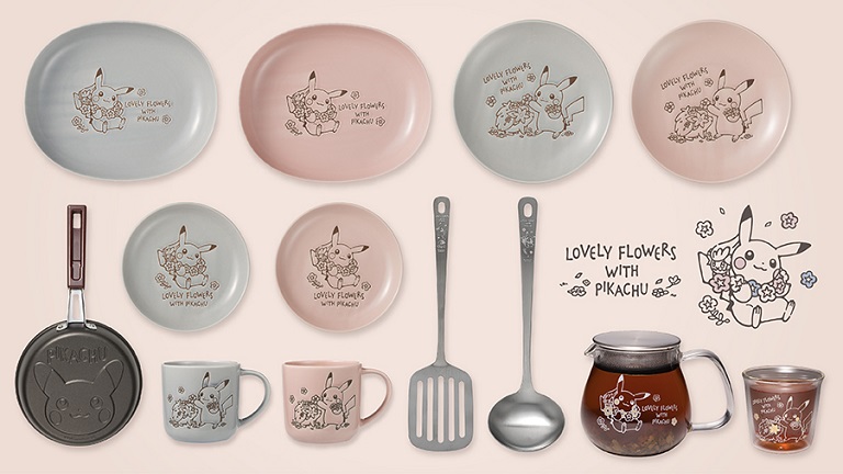 The Pokemon Center will sell flower-themed Pokemon kitchenware featuring Pikachu starting on March 27, 2021 in Japan. The online store will have the items in stock earlier than the brick-and-mortar locations, starting from March 25 at 10 P.M. JST. Aside from Pikachu, Comfey and Shaymin are also included in the designs. [Thanks, Famitsu!] The series is called “Lovely Flowers With Pikachu,” and there are two main visuals. The first is a picture of Comfey wrapping itself around Pikachu’s neck like a necklace. The second is Pikachu gifting Shaymin a flower. The crockery comes in pale pink and blue-grey. The pancake pan is the only item among this line of merchandise to have only Pikachu and no flowers. The product line-up is: