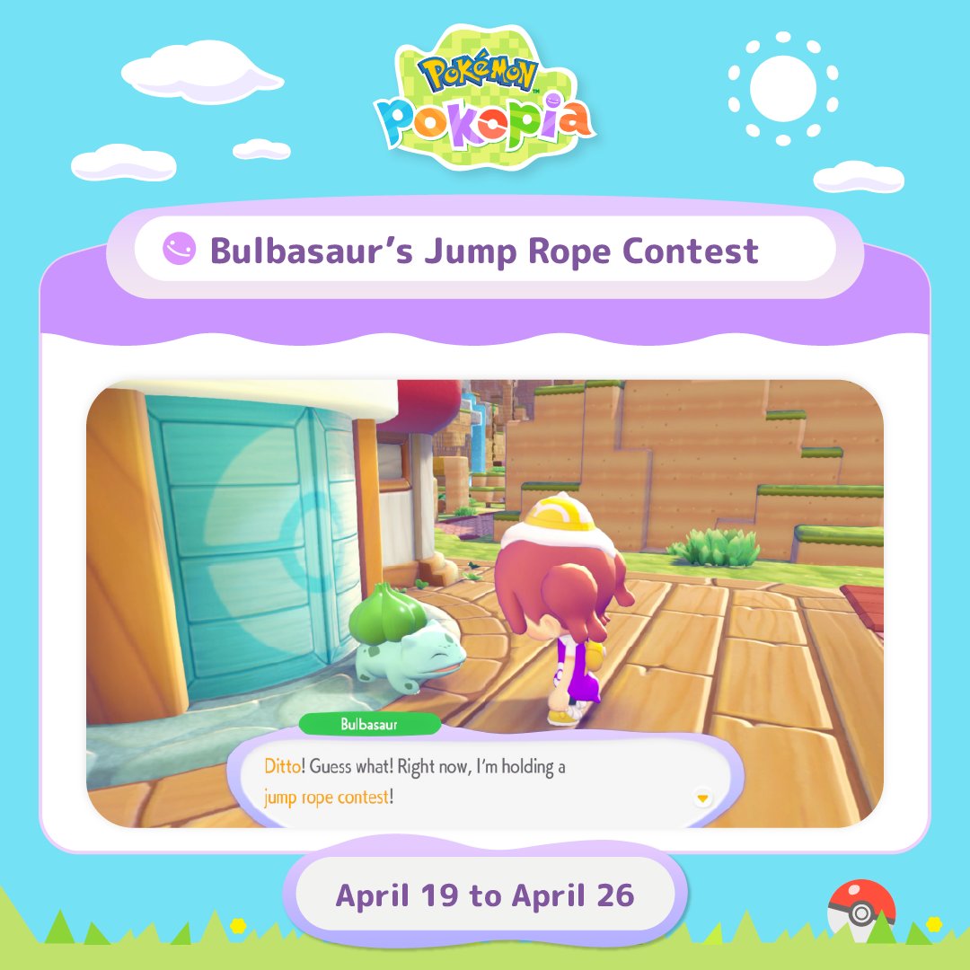 Pokemon Pokopia is available for the Nintendo Switch 2, and the Bulbasaur’s Jump Rope Contest event runs between April 19-26, 2026.