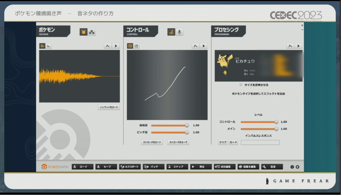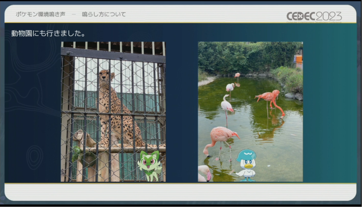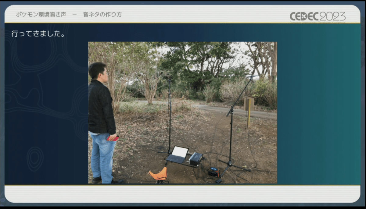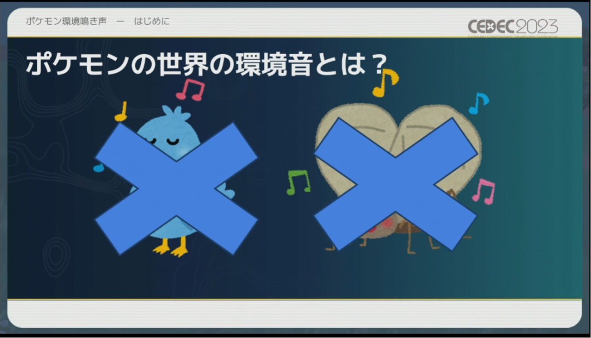 At the Computer Entertainment Developers Conference (CEDEC 2023), a presentation on the sound design of the Pokemon games appeared. Game Freak Sound Designer Go Ichinose, Connect+Echo Audio Director Kazuki Kitamura, and freelance Sound Programmer Sho Iwamoto went over the process of creating the environmental sounds and Pokemon cries, the history of environmental sounds in the series, and how they have evolved over time was discussed. [Thanks, 4Gamer!] In other games, it would be acceptable to include the sounds of creatures based in reality, such as birds and insects. In the Pokemon games, this is not allowed by Game Freak’s Junichi Masuda, who worked on audio for the games in the past. Ichinose explained that the reason for this is “because there are no animals in the Pokemon world – only Pokemon.”