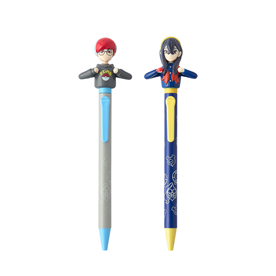 You can check out the prices and items via the official Japanese Pokemon website. Some of the goods include acrylic dioramas, a Hydrapple plush, Lacey’s barrettes, multi-use holders, and pens. The pens show Carmine and Penny (who is from the main game and not the DLC) doing the dance from Mochi Mochi Mayhem. There is also a Kieran-shaped pouch that you can use to hold coins. This pouch is reversible, meaning you can change the design to how Kieran looked in the Indigo Disk.