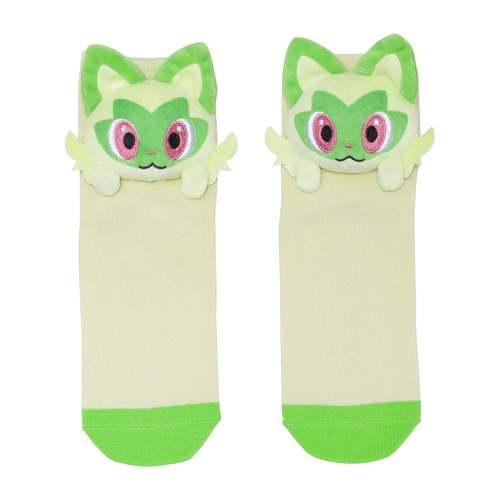 Warm and cover your feet with a set of Paldean introductory Pokemon. A new set of Pokemon socks is debuting at the Pokemon Center online store focuses on the starter Pokemon from Scarlet and Violet, among others. The lead items in the new batch of designs are sets of “mascot socks” based on the Scarlet and Violet starters: Sprigatito (aka Nyaoha), Fuecoco (aka Hogator), and Quaxly (aka Kuwassu). Each pair features a plush face of the Pokemon near the opening of the sock. When worn, the face will appear above the foot and on the leg of the wearer. Two versions of each starter sock exist, based on the buyer’s length preference.
