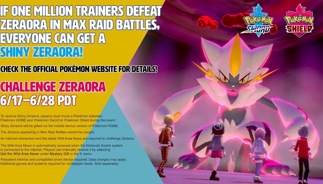 The only way you get a Zeraora is if one million people take part in and defeat it in these Max Raids. If that happens, then people who use Pokemon Home and Pokemon Sword and Shield will get the shiny version.
