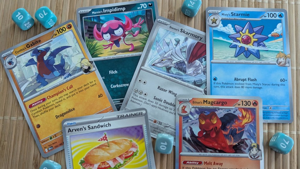 Gold and Silver protagonist Ethan and recent companion Arven might be the headliners. Arven has a Mabosstiff, a Toedscruel and a Greedent, with no particular energy required and a dedicated sandwich item for efficient healing. It’s flexible, but may need an external centerpiece. Ethan’s party would only look nostalgic if you accidentally caught and used a ton of Fire types, with only a Pinsir and Sudowoodo with colorless attack options. He gets a dedicated Trainer to search for Pokemon and energy, and his Typhlosion’s attack needs you to have adventured as much as possible (into the discard pile) to really hit. His Ho-Oh is the star, speeding up your energy ramp and managing a decent attack in a pinch.