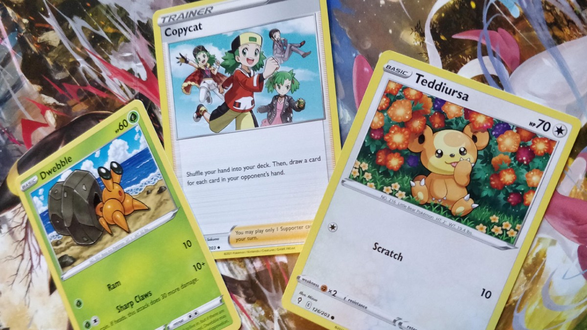 The Pokemon Trading Card Game is good at making up for its tiny creatures’ relative weakness by making them adorable. That’s definitely true with this new Teddiursa, licking its paw while melting our heart. The Little Bear Pokemon is hanging out in some flowers, and it’s ready to be your friend. Also making the cut here is Dwebble. It’s an impressive illustration job to make a rocky bug this endearing. Pokemon aren’t the only cute things in Pokemon, though! Copycat is out here cosplaying as Galar icons like Marnie and Leon, and it looks like a whole lot of fun. There are different poses on the normal and alternate art versions, too. We don’t know why this one hits us as particularly cute, but Leafeon VMAX is using its Dynamax size to help roll hay bales on a farm. It’s pawing at it like a yarn ball. We like it very much.