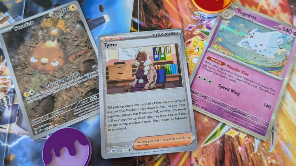 Similarly experimental is this set’s Togekiss. As always, the effort to get a Stage 2 out is probably not worth the result, but the Wonder Kiss ability gives you a 50-percent shot at an extra prize for each knock-out. There’s probably some fun shenanigans you could manage if you paired it with the 151 print of Chansey. If you want to get really weird, you can do that too. Tyme is out here making opponents guess HP.