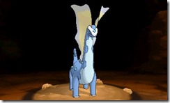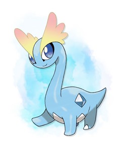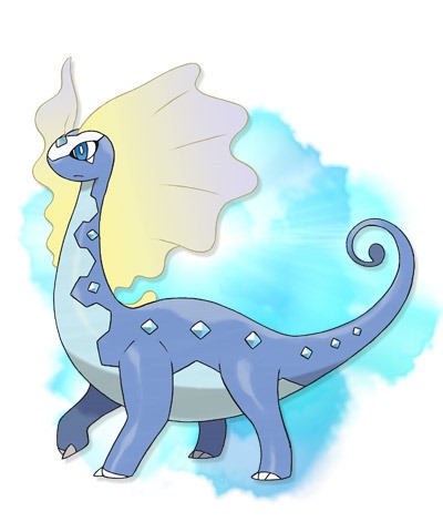 Amaura evolves into Aurorus. Both Pokémon are Rock/Ice-types. Like Tyrunt, Amaura is believed to be one hundred million years old. After it evolves, it can blast air to form a wall of ice to shield itself from attacks. It can learn Aurora Beam at an early level and also has a move named Freeze-Dry, which is super-effective against Water-type Pokémon—something that isn’t typical of Ice-type moves.