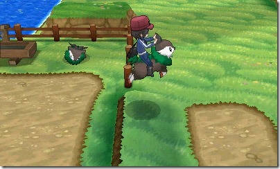Finally, there are the new methods of transportation. We’ve all heard about the Pokémon riding, but that is actually a very small feature since it’s limited to very small areas and it’s not with Pokémon in your party. For example, you can ride Gogoats through Lumiose City, but they function as a sort of public transportation so you don’t have to navigate the massive, and admittedly confusing, city yourself. Outside of Lumiose, you can ride Skiddo in a closed pen (and although you can jump the fence the same way you can in Zelda: Ocarina of Time with Epona, even then Skiddo can’t seem to figure out how to climb stairs). Finally, at one point, you’re required to ride a Rhyhorn through a treacherous trail of craggy rocks that prevent your trainer from making it through himself. The Rhyhorn in particular is hard to control because of the way its controls are mapped and the speed at which it moves. It can break boulders with its horn and open the way to various small side paths where you can find items. However, like the Skiddo, the Rhyhorn is confined to its trail and that’s it.