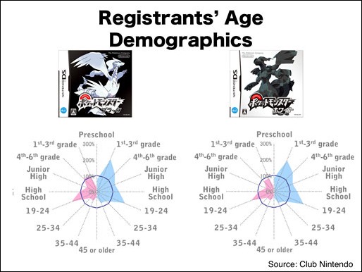 This demonstrates the continuation of an ongoing trend. Since the release of Pokémon HeartGold/SoulSilver, the Pokémon audience has gradually been expanding to include more older players. In fact, at the time of Pokémon Black/White’s launch in 2010, first-week sales were divided among a broad spectrum of gamers ranging from very young children to people aged 19 – 24. (See the chart above for reference.) So, in the case of Pokémon X and Pokémon Y, where school kids were preoccupied with exams, Pokémon’s older fanbase picked up the slack. In the weeks ahead, it should be interesting to see how sales hold up, since more kids will be free to buy the games, and Media Create recently reported that Monster Hunter 4 has begun selling to younger players now, too. That means the two games will likely initially compete with each other for people’s money. Food for thought: Interestingly, Animal Crossing has been following the same trend as Pokémon, and amassing a greater number of players between the ages of 19 – 24. The primary difference is that a greater portion of Animal Crossing’s audience consists of women.