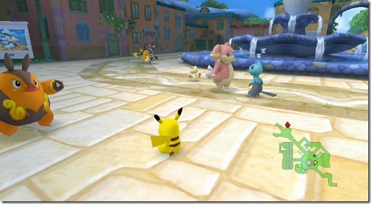 Out of the four Pokémon you can control, their physical abilities are taken into account in battles and out. Each has their own special abilities that make exploring interesting. Oshawott can swim, Snivy can jump high, and Tepig can break rocks apart with his charge. (Pikachu’s all-around average, but you’ll still find yourself using him quite a bit.) Sometimes, you’ll find yourself returning to previously-visited areas to try and find new ledges or break open new pathways to look into.