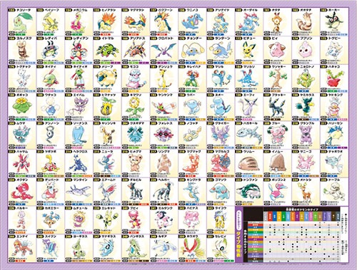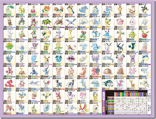 Poster showing all the Johto Region Pokémon and their type affinities.