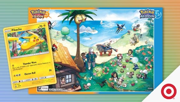 This Saturday, to celebrate the release of Pokémon Sun & Moon on November 18th, Pokémon fans will be able to snag an exclusive Pikachu SM Promo Card and a Sun & Moon poster at participating Target stores. To get a card and poster of your own, simply visit a Target this Saturday, November 19th, between 11:00 am and 2:00 pm. [Thanks, @BulbaNewsNOW] You can get a preview of both the card and poster in the image below.