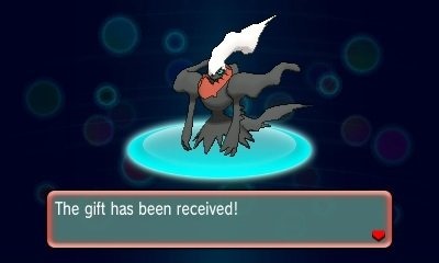 The start of a new month means a new Mythical Pokémon is available to pick up on Pokémon X/Y and Omega Ruby/Alpha Sapphire versions. [Thanks, Serebii.] Players can receive a level 100 Darkrai which knows the moves Dark Void, Ominious Wind, Nightmare, and Feint Attack. The Dark-type Pokémon will also have the ability Bad Dreams. To obtain a Darkrai, players must use a code provided at one of the following distributors: