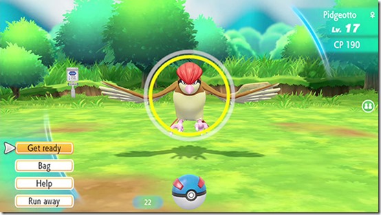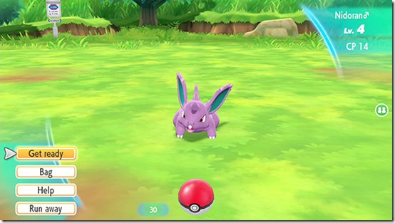 If you’re familiar with previous Pokémon RPGs, you’ll find that catching Pokémon works a bit differently in this game. As you wander through the game’s world, you’ll encounter wild Pokémon wandering around in fields of tall grass. If you see a Pokémon you want to attempt to catch, simply approach it.