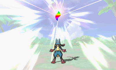 Mega Evolution is an Evolution that goes beyond all previous Pokémon Evolutions. Pokémon that Mega Evolve temporarily unleash the power hidden within them, tapping into a strength that would be beyond imagining in regular Evolution. There are two conditions that must be fulfilled for Mega Evolution to occur. First, Trainers must wear a special item called a Key Stone, while Pokémon must hold a specific Mega Stone for their particular species. Second, a Trainer must have a strong bond with his or her Pokémon in order for these two items to resonate with each other. Mega Evolution can only be triggered once per battle, and deciding which Pokémon to Mega Evolve—and when—can be crucial in deciding the outcome of a battle.