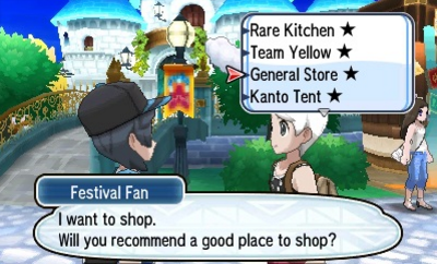 By talking to people and listening to their requests, you can receive Festival Coins, which you can spend in Festival Plaza. There are all kinds of cool stores in Festival Plaza, such as goody shops where you can get deals on items, bouncy houses for Pokémon to train in, and dye houses where you can dye your clothes new colors. The rank of your Festival Plaza increases based on the number of Festival Coins you gather. As its rank goes up, you’ll receive rewards—and the things that you can do in Festival Plaza will also increase!