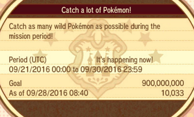 Global missions are limited-time events that give Trainers around the world a shared mission via Festival Plaza in Pokémon Sun and Pokémon Moon, and they will be held at regular intervals. The theme of the first global mission will be “Catch a lot of Pokémon!” It’s expected to go live in late November. What’s it all about? Why, this mission is about catching a lot of Pokémon—regardless of their species! The number of Pokémon needed, along with other goals to achieve, will be announced on the Pokémon Global Link immediately before the mission goes live. Keep an eye peeled for the reward you can receive for completing the mission—and remember to invite your friends to join in, too! Note: You must register your game on the PGL to see your global mission results reflected. Note: To help celebrate the opening of the PGL, we hope to give out a special gift to all PGL members after our first successful global mission!