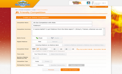 In these Internet competitions, you’ll battle other participants you’ve been matched with and compete for the best rating. These competitions can be open to Pokémon Trainers all around the world, or they can be set to only allow pre-approved Trainers to enter. When the number of participants exceeds a certain number, Pokémon ranking will also be calculated, just as in official Online Competitions.