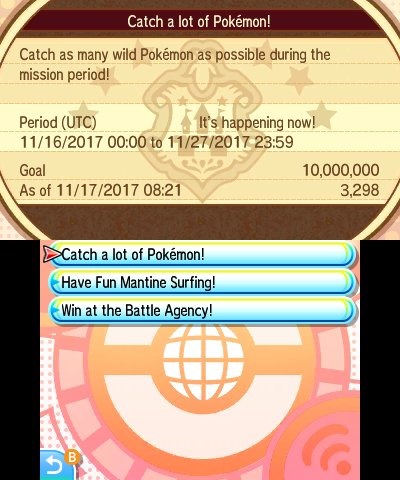 The Pokémon Ultra Sun and Ultra Moon Global Mission of the moment is “Catch a lot of Pokémon!” The goal is for people to work together to catch 10 million wild Pokémon. As people may recall, Pokémon Sun and Moon’s first Global Mission also involved catching a certain number of wild Pokémon.