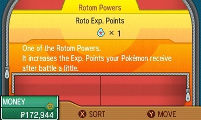 Roto Loto is a feature that lets you get items from your Rotom Dex as you get closer to Rotom. These special items that you get from your Rotom Dex’s Roto Loto come in different varieties, with some increasing the Exp. Points or prize money that you receive for a set period of time, while others might make it easier to catch Pokémon or have other effects. You may choose to use these Rotom Powers from your Bag whenever you’d like!