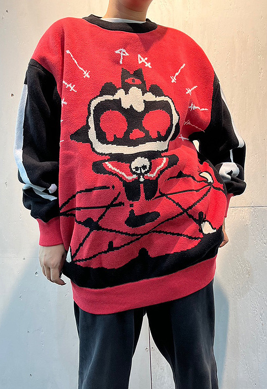 Good Smile Company partnered with Massive Monster and Devolver Digital to release a Cult of the Lamb ugly sweater in 2024. Fans looking to add this sweater to their collection can purchase it for ¥13,750 (approx. $92 USD). This cotton knit sweater features a black, white and red motif of the Lamb floating in the middle of a pentagram with candles lit at each point of the star. The Lamb’s eyes are bleeding as it completes a ritual. The sleeves and back feature the white double-lined cross design from the game. The Cult of the Lamb sweater only comes in one size with an approximate length of 74cm, approximate width of 55cm, approximate shoulder with of 55cm, and approximate sleeve length of 61cm. Official product photos of the cotton knit ugly sweater can be viewed below: