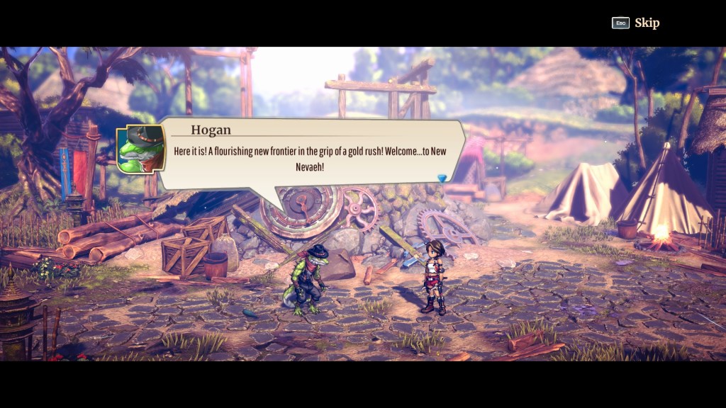 Before Eiyuden Chronicle proper, people will be able to explore a part of its world and meet some of its characters with Eiyuden Chronicle: Rising. Granted, it’s a very different sort of game. This one is an action-RPG focused on exploring areas and acquiring resources. However, even after only a few hours with it, it is clear both pacing and character development will be important. Eiyuden Chronicle: Rising begins with CJ. She’s a Scavenger looking to prove herself during her rite of passage. Which brings her to New Nevaeh to explore its Runebarrows. After saving Hogan from some bandits, she learns its Barrows do indeed contain Rune-Lenses, and he brings her into town. While acting mayor Isha requires everyone who enters to get a 100,000 baqua explorer’s license and takes a 30% artifact tax, there is another option. Filling a stamp card lets CJ earn a license so she achieve her goal. So, she heads off to help fill her card and earn her license, so she can eventually explore the Barrows, help build up the dilapidated town, aid its residents, and perhaps uncover the secrets behind its mysteries and earthquakes.