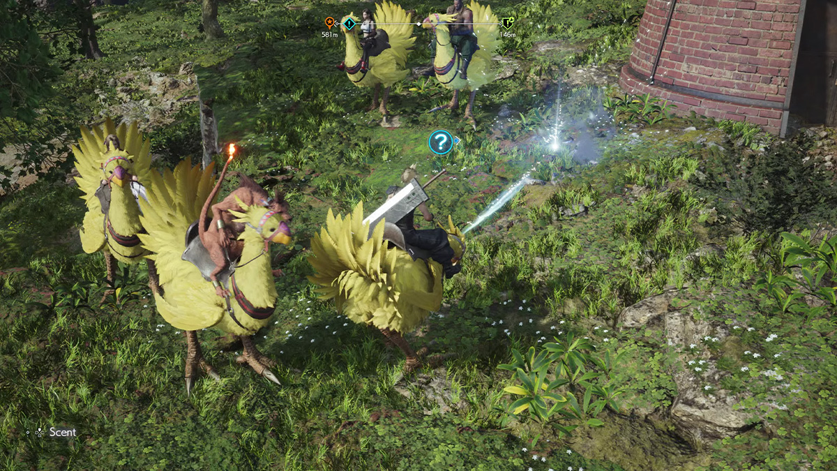 Speaking of adorable, chocobo have a lot more personality in this game compared to past releases. While riding on chocobo your mount will sometimes pick up on a smell. If you allow your pet to sniff around the area, it will trigger a treasure hunt. It’s up to you to read your chocobo’s body language, which can eventually lead you to a buried treasure if you figure out the right direction to run in. There are even little baby chocobo hidden throughout the map, and if you find them, they lead you to chocobo rest stops, which become fast travel points if Cloud fixes the broken signs.