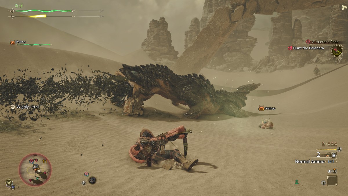 But while using familiar equipment and seeing the improvements were absolutely a reason I enjoyed my early hours with Monster Hunter Wilds, the quality of life adjustments, environments, and monsters are what make me wish I didn’t need to wait about two months to play more. The Seikret and SOS Flare system were infinitely helpful in my situation, given time was at a premium and I was limited to solo hunts during the session. The former isn’t just a speedy way to explore the large environments. If I let it handle the steering, I could focus on gathering along the way or even some attacks on more minor prey on the way to my major hunt. It was easy to rein the bird in and take control, if I decided I wanted to be in charge of the journey, but also made it possible to scale certain areas to quickly give chase in a fight. With the SOS Flares, I was delighted to not only see the NPC Hunters were adept at their duties, but would comment on story quests and be folks I’d see in the campaign and around camp.