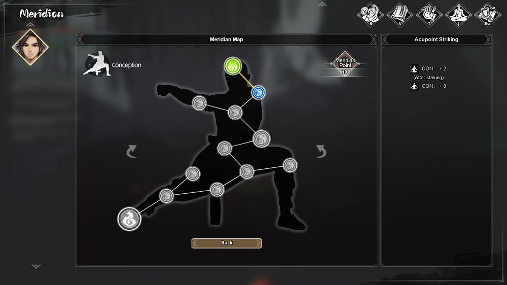 The story of Wandering Sword follows Yuwen Yi. He is a sweet and kind young man who is the sole survivor of his caravan of friends. They all died following an attack from the Tianlong Gang. His client, a martial arts master, manages to save him. Yuwen Yi then recuperates under the care of the gruff Jiang Yinfeng and his peppy daughter Jiang Xiaotong. Upon recovering from the venom coursing through his body and encountering the various factions within China, Yuwen Yi sets out on a journey to master martial arts and fulfill a promise that he makes with Jiang Yinfeng. Wandering Sword ping-pongs between explaining way too much too fast, and explaining too little. Since I played the demo, I can understand if there is not a lot of time to spend on exposition. But because it’s a demo, I thought it would be a bit more welcoming to its new players. It throws a lot of new terms and characters at you, and the tutorials are so quick and prevalent that it is really easy to forget what you just learned before you have to learn something else. Thankfully, the systems in the game are fairly simple. You can upgrade individual techniques, or unlock meridians to permanently boost stats.