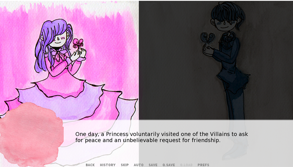 Players will help guide the Princess through her interactions with a villain in The Villaintine, making several choices in how to talk with their criminal pal (although these decisions are mainly just to offer a variety of conversation options). Over the course of their time together, the Princess may find that forcing a friendship on someone may not teach them anything about being good, and that her own beliefs may not be as positive as she thinks they are.