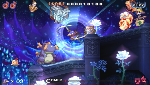 You may remember Pram from Makai Kingdom as the oracle overlord. In Prinny 2 she lives in a hellish white rose and is holding a rare item. Beat her and you’ll get it as a present.