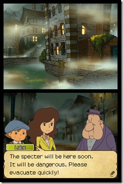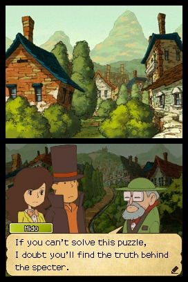 The previous Professor Layton title, The Unwound Future, ended Layton and Luke’s adventures. Professor Layton and the Last Specter rewinds time and explains how the puzzle solving duo met. Before the story begins, we’re introduced to Emmy who was hired to be the professor’s assistant. She proves to be just as sharp at brainteasers when she decodes a letter from one of Layton’s old friends. The two head to Misthallery, a village in England with a supernatural conundrum. A boy in the quaint town by the name of Luke Triton can predict where a destructive specter appears, which means there must be more to the mystery.