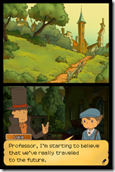 Layton is about to take a trip through the fourth dimension. Professor Layton and the Unwound Future starts with a letter sent ten years from the future. Luke, Layton’s young assistant, meets his older self after the puzzle solving duo use a time machine to travel to future London.